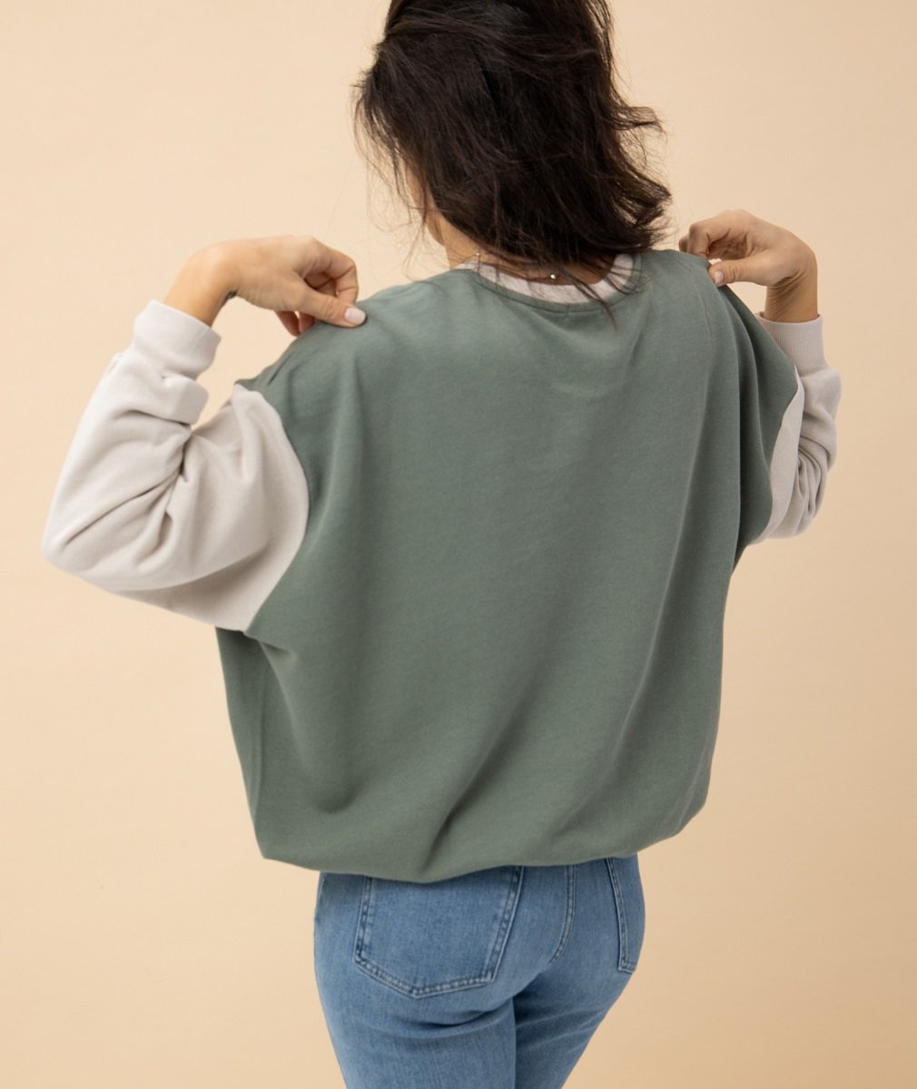 Ένα φούτερ σε φαρδιά γραμμή και με ελαστικότητα. Μπορείτε να το φοράτε και κατά την διάρκεια της εγκυμοσύνης για άνεση και να το συνδυάσετε είτε με κολάν, είτε με φόρμα, με παντελόνια.
